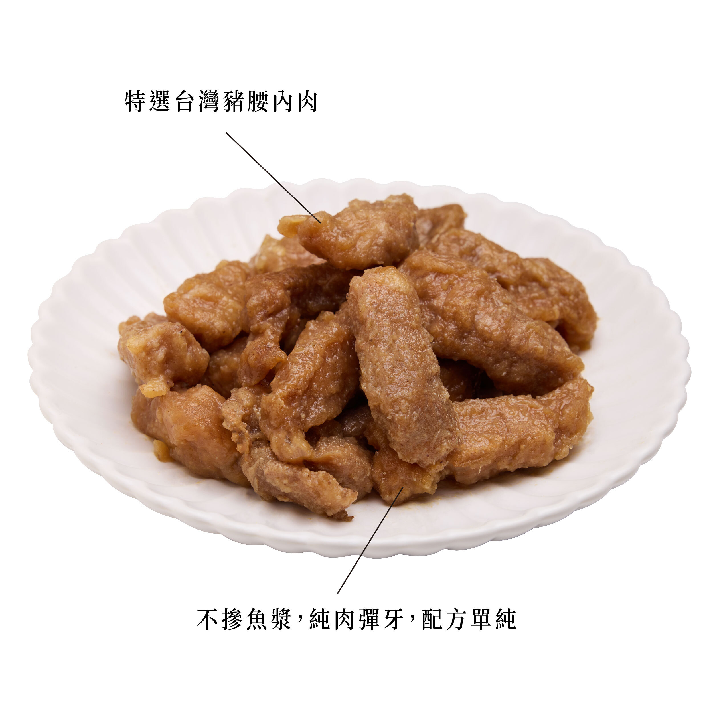 特選台灣豬腰內肉,不摻魚漿,純肉彈牙,配方單純,火鍋湯品百搭。