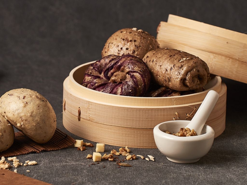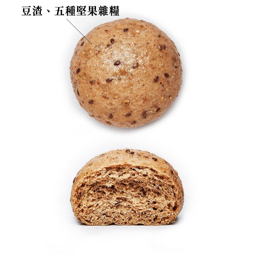 Q彈麵糰揉入豆舖子自製烤豆渣與紅藜麥、核桃、葵花子、南瓜子、亞麻籽的多重營養;豐富口感無論塗醬、夾料或是單吃都適宜。