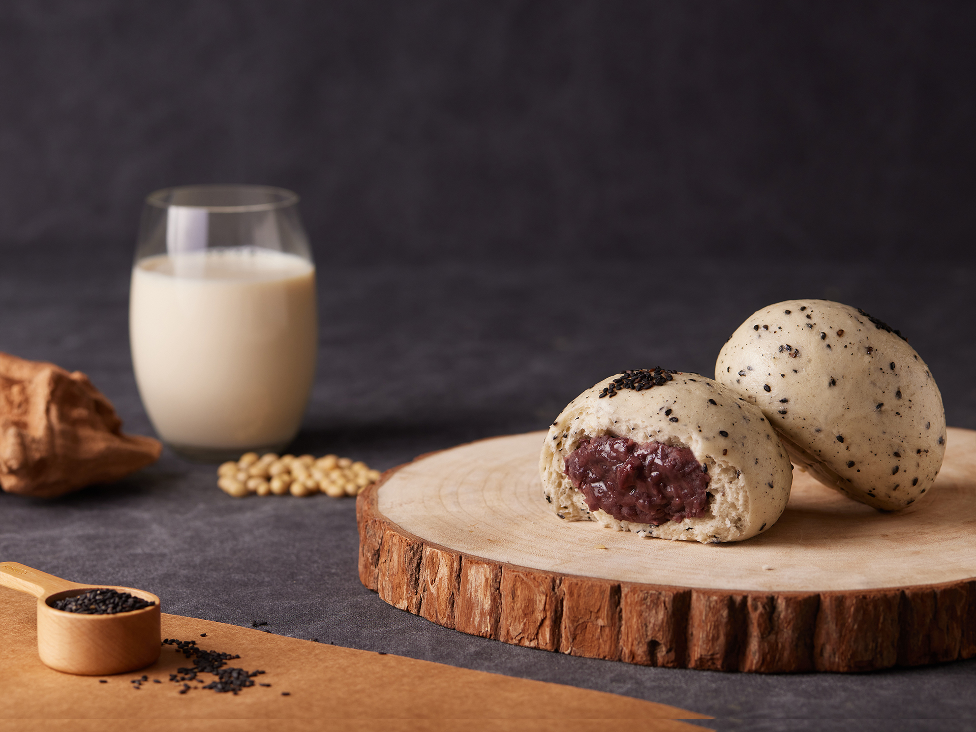 自製豆漿+原粒黑芝麻揉入Q彈麵團,萬丹契作紅豆秘製餡鬆綿不膩