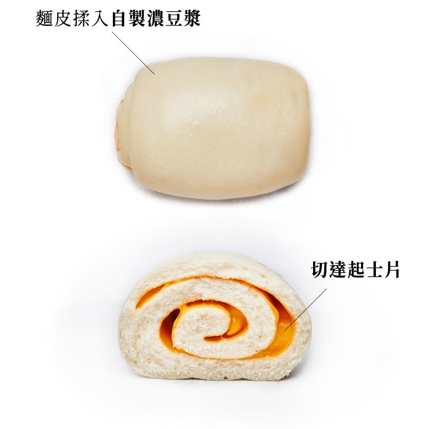 Q彈麵糰揉入豆舖子自製濃豆漿營養;切達起士片散發淡淡鹹香。