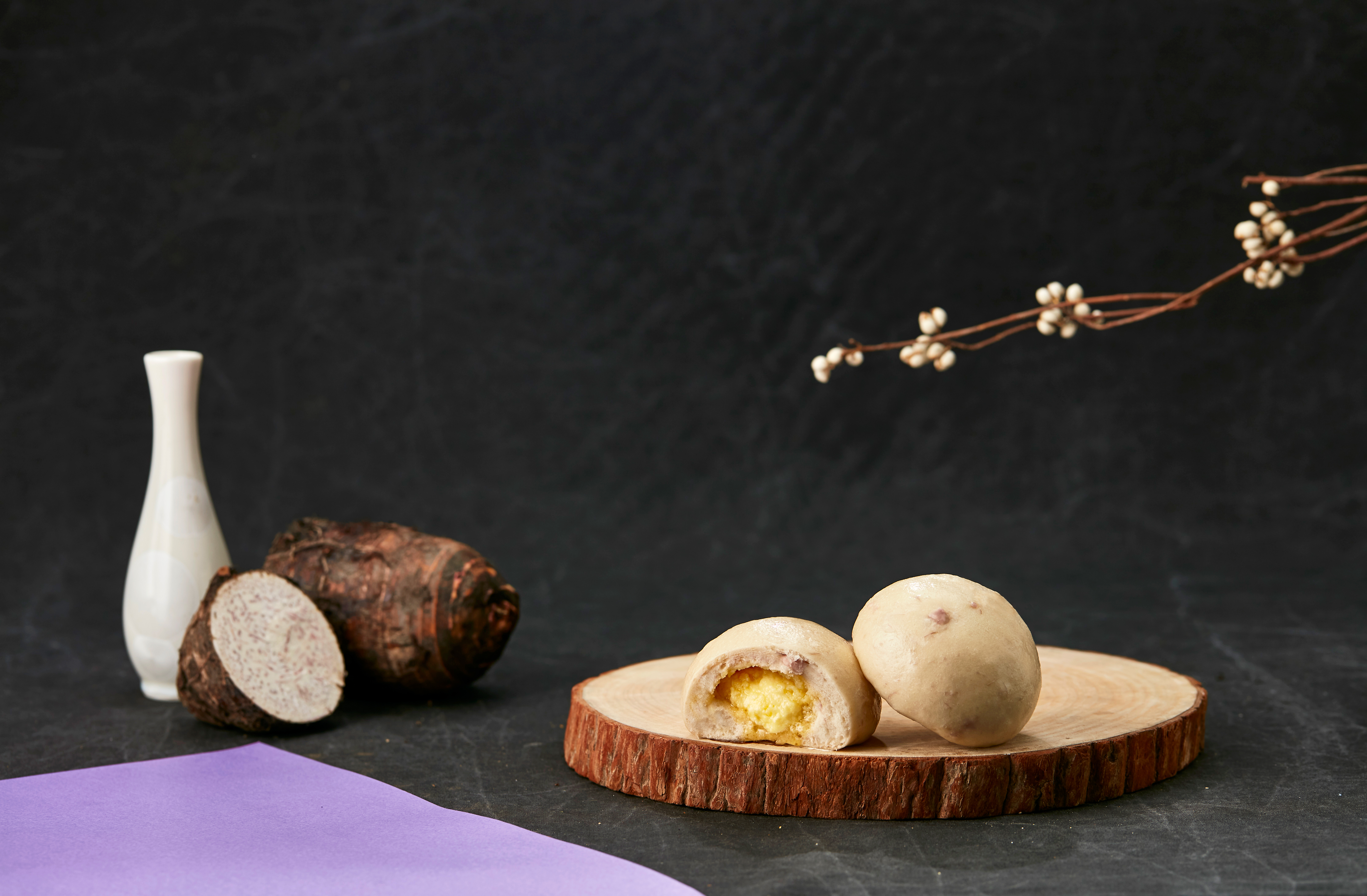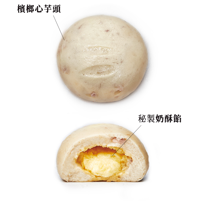 不甜不膩的秘製奶酥餡,融化在揉有檳榔心芋頭丁的Q彈麵皮中。